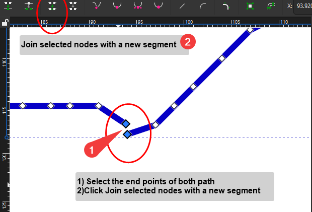 Join selected notes to merge 2 paths into a single path that will plot witout pen lifting (Don't use CTRL+K it joins the paths but keeps the pen lift)