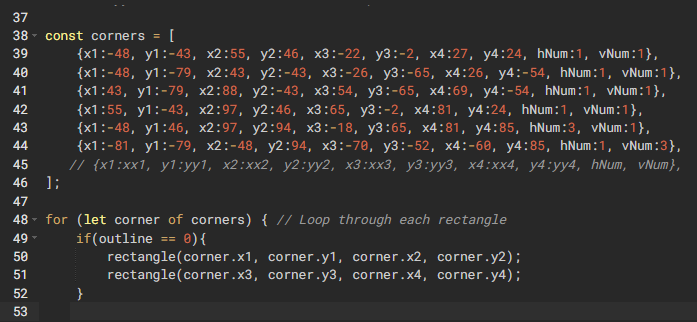 for (let corner of corners) { // Loop through each rectangle